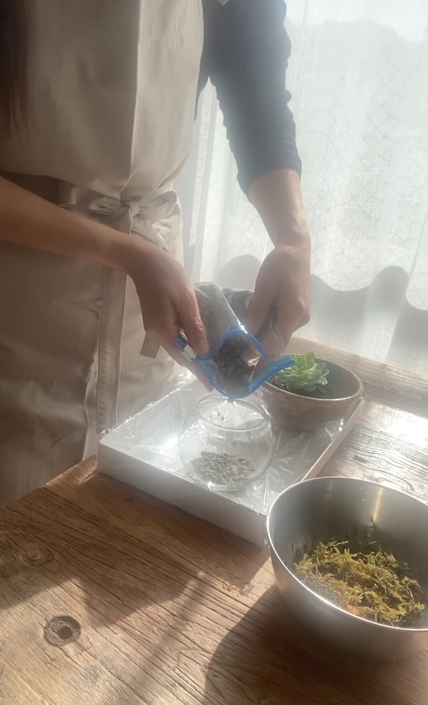 まずは底に砂を入れていきます